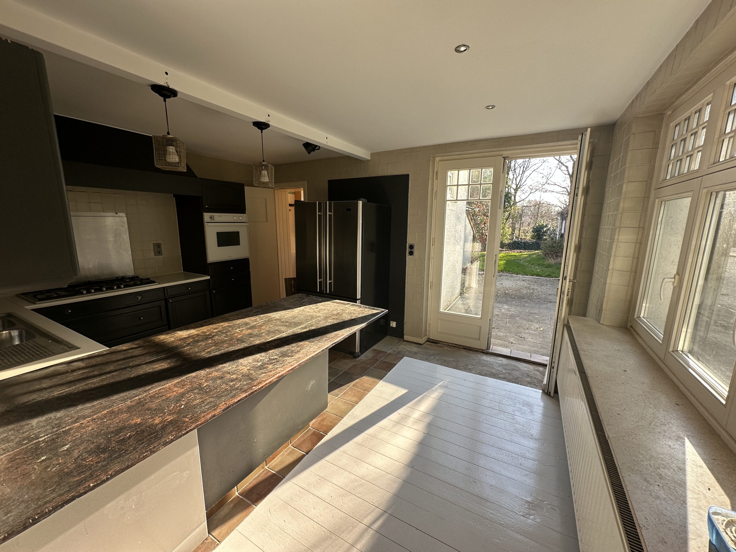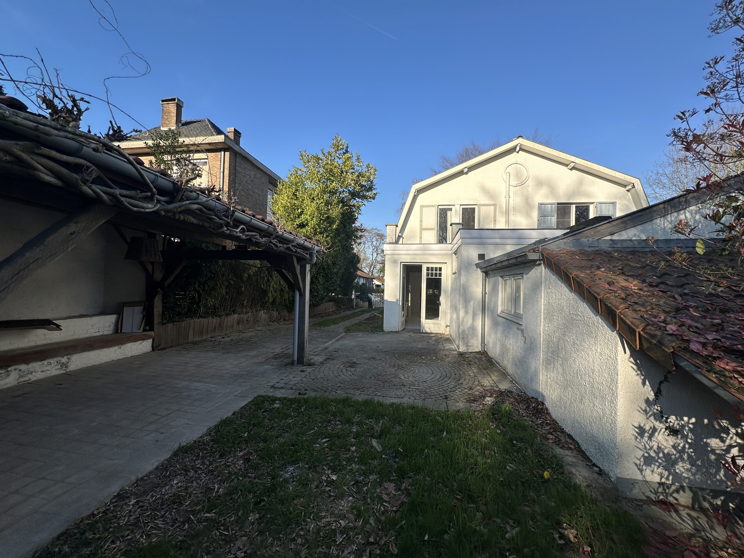 Belle maison 3 façades comprenant des belles réceptions (plancher en bois au sol) avec feu-ouvert – une cusine équipée – dressing – salle de bain (baignoire et deux lavabos) – 3 chambres (plancher en bois traité) dont une avec un dressing – dans l’annexe indépendante 2 bureaux et une salle de douche (lavabo, douche et toilette). Cave avec chaudière au gaz – beau jardin avec grande teraesse couverte et coin BBQ. Quartier calme et aéré à deux pas de Linkebeek (LABORELEC)